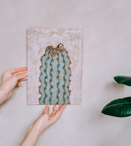 The paintings in this collection are all highly textured to give the illusion that they have been painted directly on a rock or a weathered wall. The paintings in this collection are all painted on wooden boards coated with a thick layer of pumice gell - pumice is a kind of volcanic stone, which is created when volcanos erupt - and a final layer of oil paint is gently painted on top of the pumice in natural tones and simplistic imagery. To read the full story behind the collection click HERE.